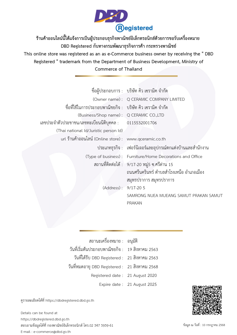 - – การรับเปลี่ยนหรือคืนสินค้า สำหรับลูกค้าสั่งที่ซื้อผ่าน คิว เซรามิค